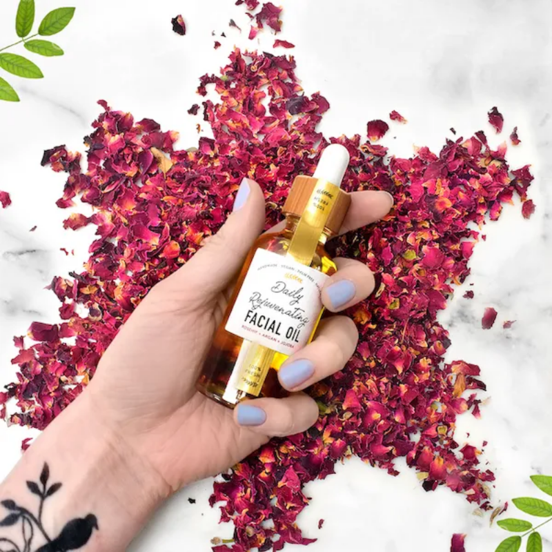 Daily facial oil suitable for all skin types. In a glass and bamboo dropper bottle, to wow your customers.